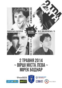 Львівська кав’ярня «Брама» з нетерпінням очікує на кожного небайдужого житомирянина, що прагне долучитися до знайомства з чи не найяскравішим представником сучасної поезії міста Лева Мірека Боднара.