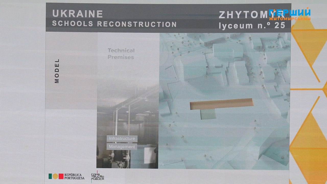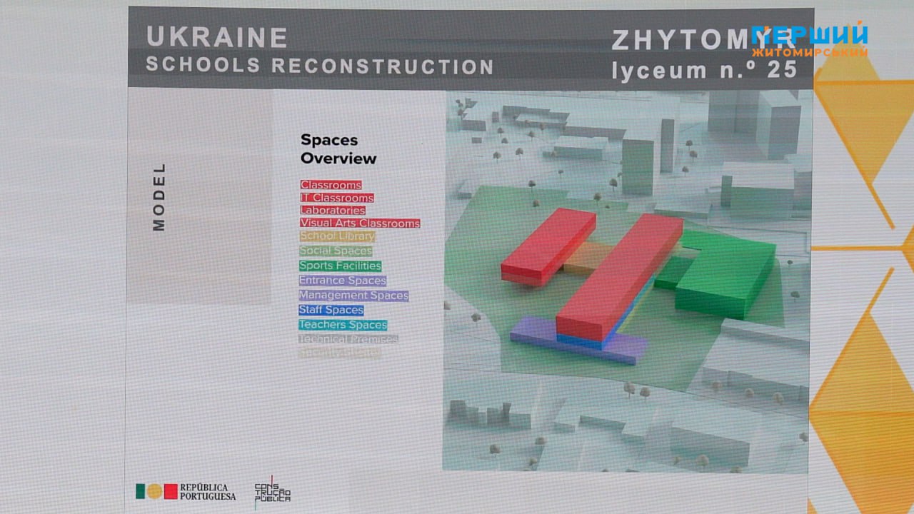 Директор Державної компанії Португалії Construção Pública, E.P.E. у відеоформаті презентував концепцію відбудови ліцею №25 у Житомирі та зазначив, що робота над цією програмою знаходиться на заключному етапі та її виконання розпочнеться після оголошення публічного тендеру.