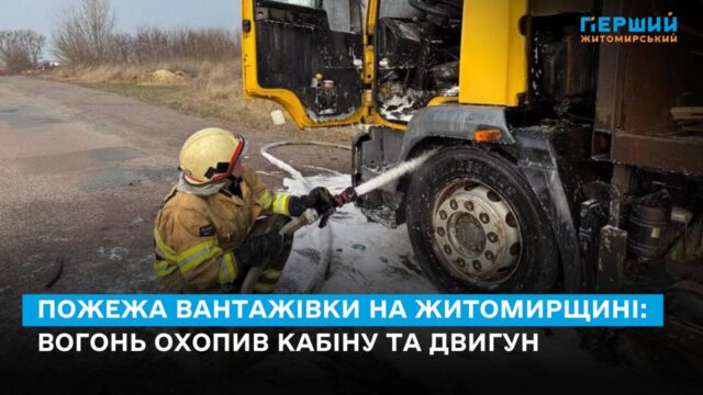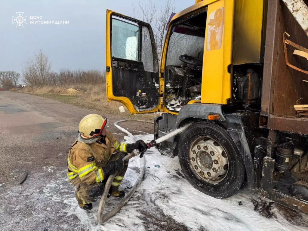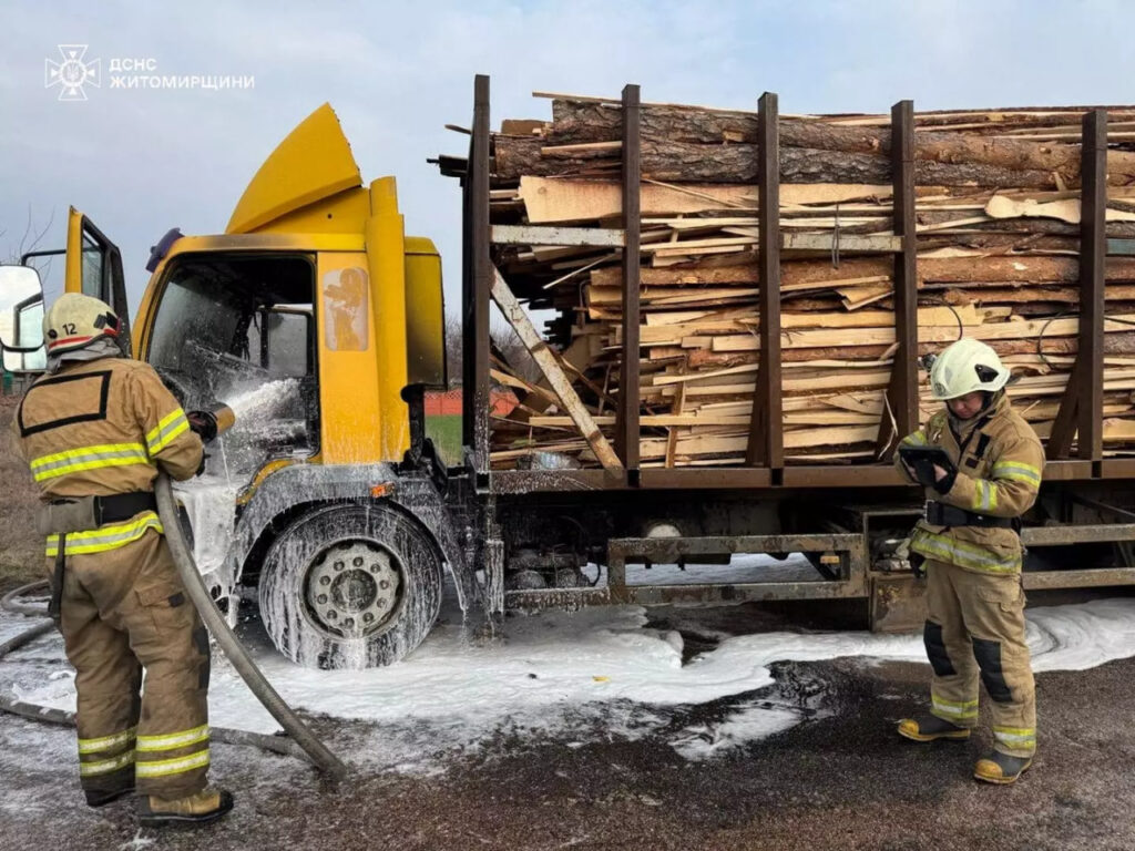 У Коростенському районі 27 березня неподалік села Підруддя загорівся вантажний автомобіль. Вогонь швидко поширився на кабіну та двигун, загрожуючи зайняти деревину в причепі.