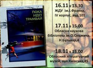 Протягом трьох днів проходитиме презентація книги «Поки йде трамвай» та відбуватимуться зустрічі з її автором Тетяною Вечірко.