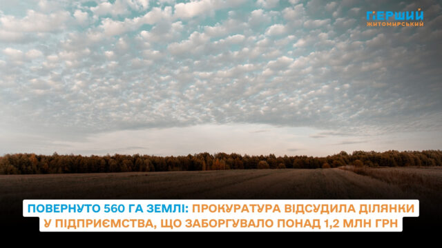 За позовом Коростенської окружної прокуратури з незаконного користування повернуто 560 га сільськогосподарських земель, повідомила Житомирська обласна прокуратура.