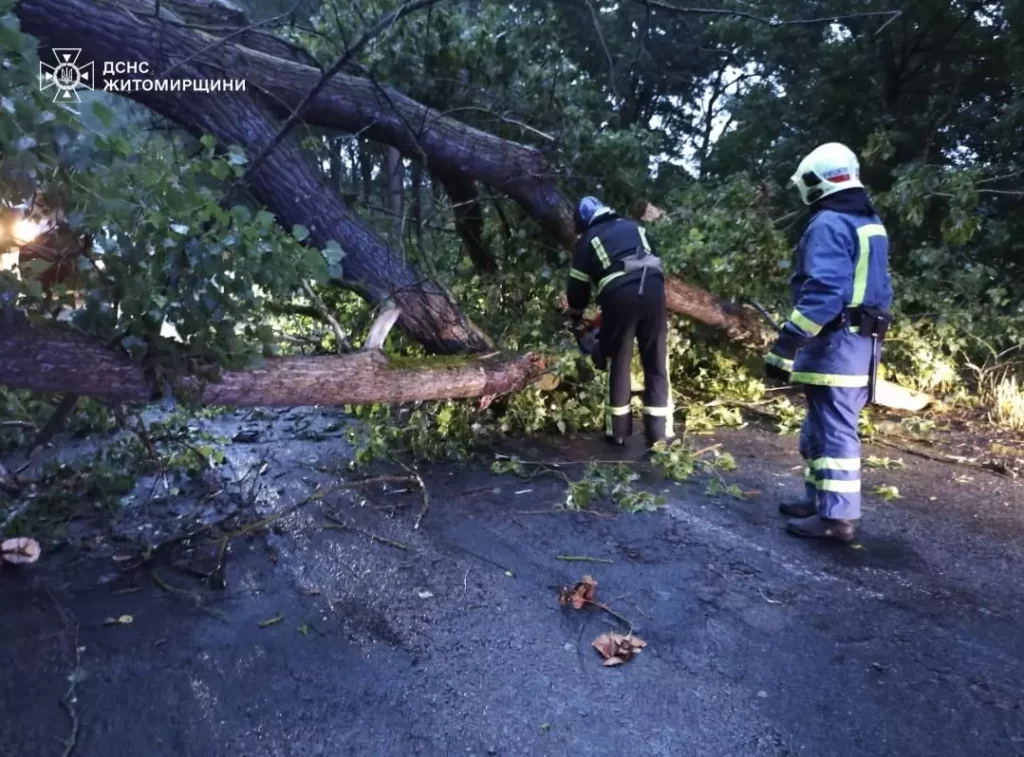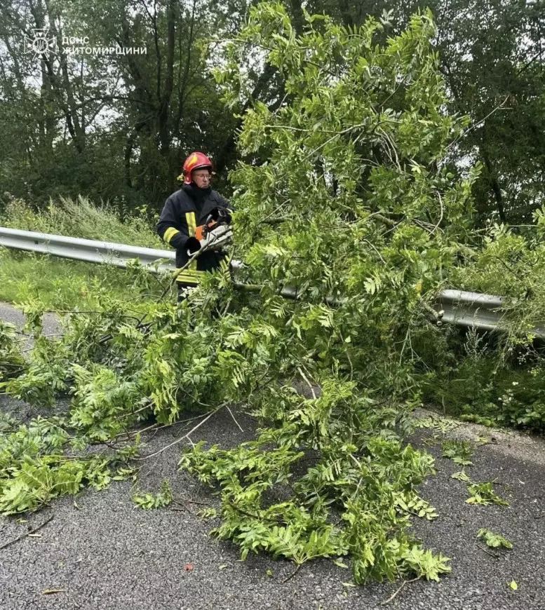 Більшість випадків зафіксували в Житомирському районі — зокрема, поблизу селища Черняхів, сіл Будичани та Кутище. Повалені дерева повністю перекрили проїзд, спричинивши затори. Водії змушені були зупинити рух, доки рятувальники не порізали та не прибрали стовбури з проїжджої частини.