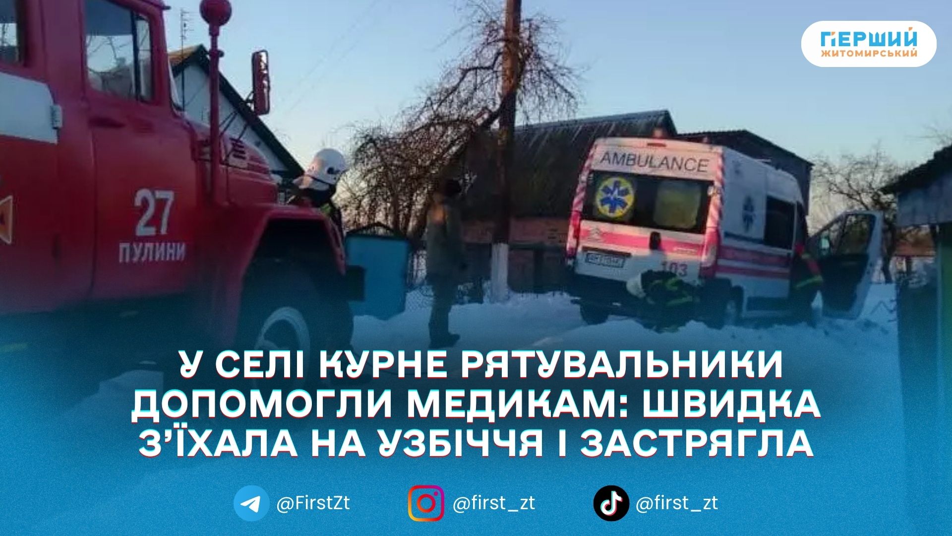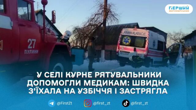 У селі Курне Житомирського району рятувальники надали допомогу медикам: автомобіль швидкої застряг на слизькому узбіччі. Про це повідомили в ГУ ДСНС у Житомирській області.