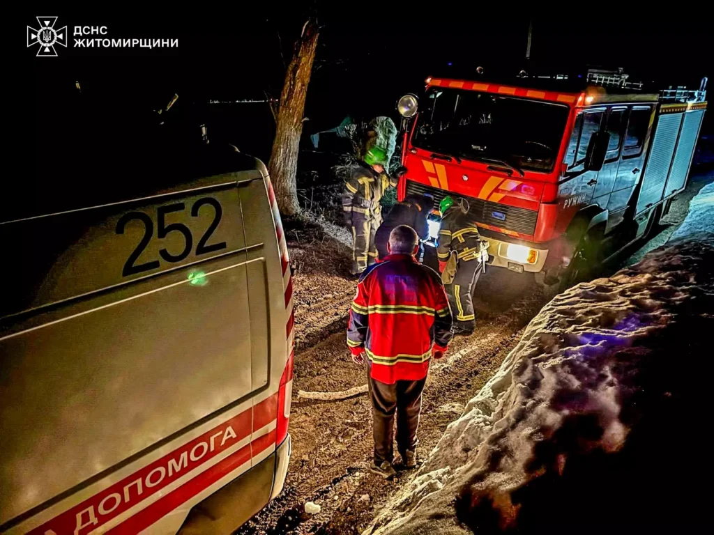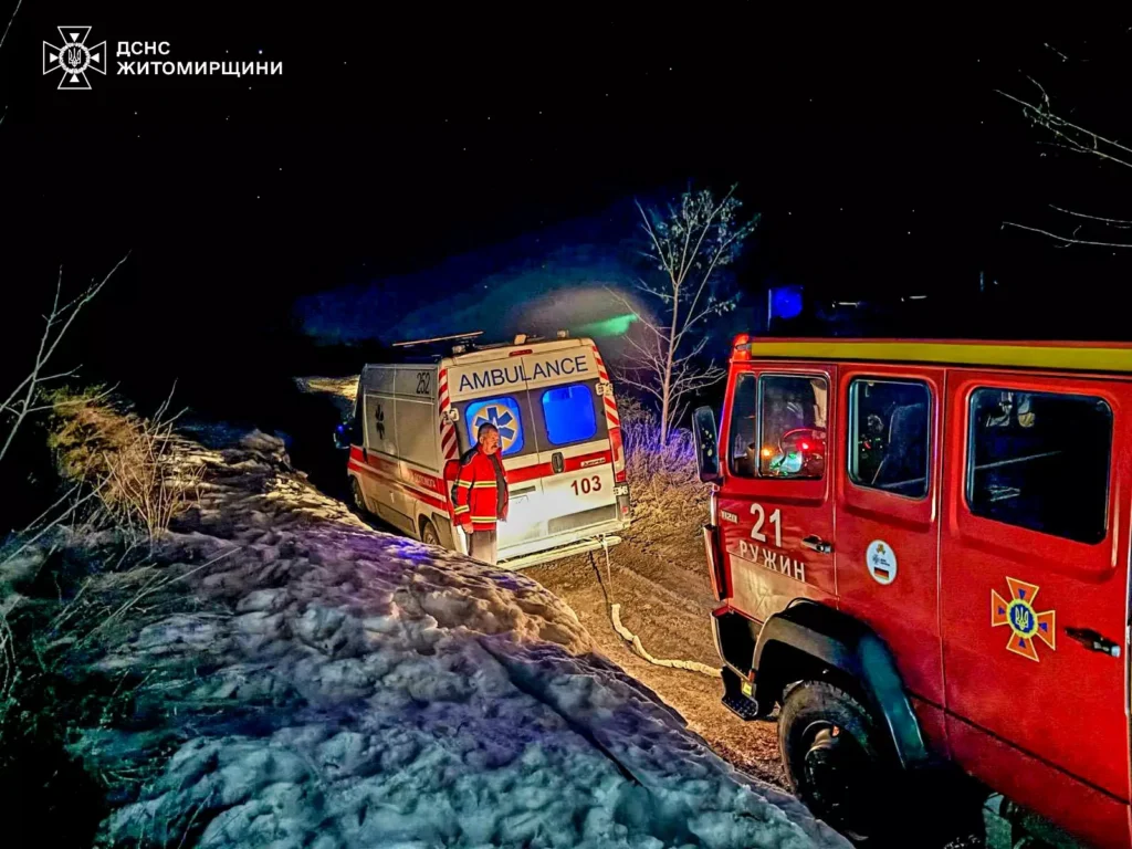 За інформацією рятувальників, 10 березня о 23:13 до Служби порятунку «101» надійшло повідомлення про те, що в селі Бистрик Бердичівського району автомобіль швидкої допомоги застряг на дорозі. У цей час медики поверталися з виклику.