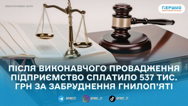Як повідомляє ДЕІ, Господарський суд Житомирської області рішенням від 22 жовтня 2025 року зобов’язав підприємство відшкодувати збитки у розмірі 537 433,35 грн.