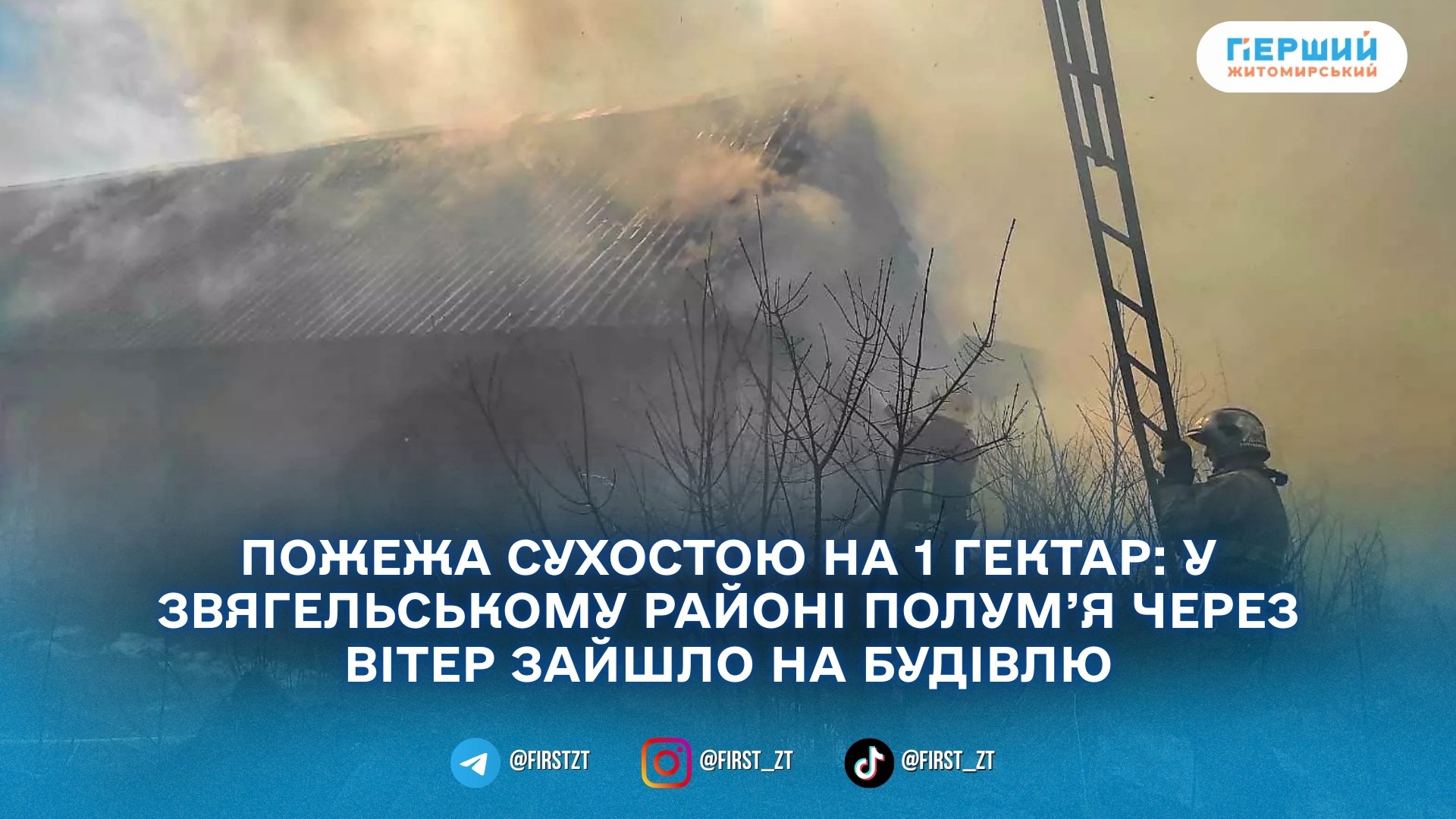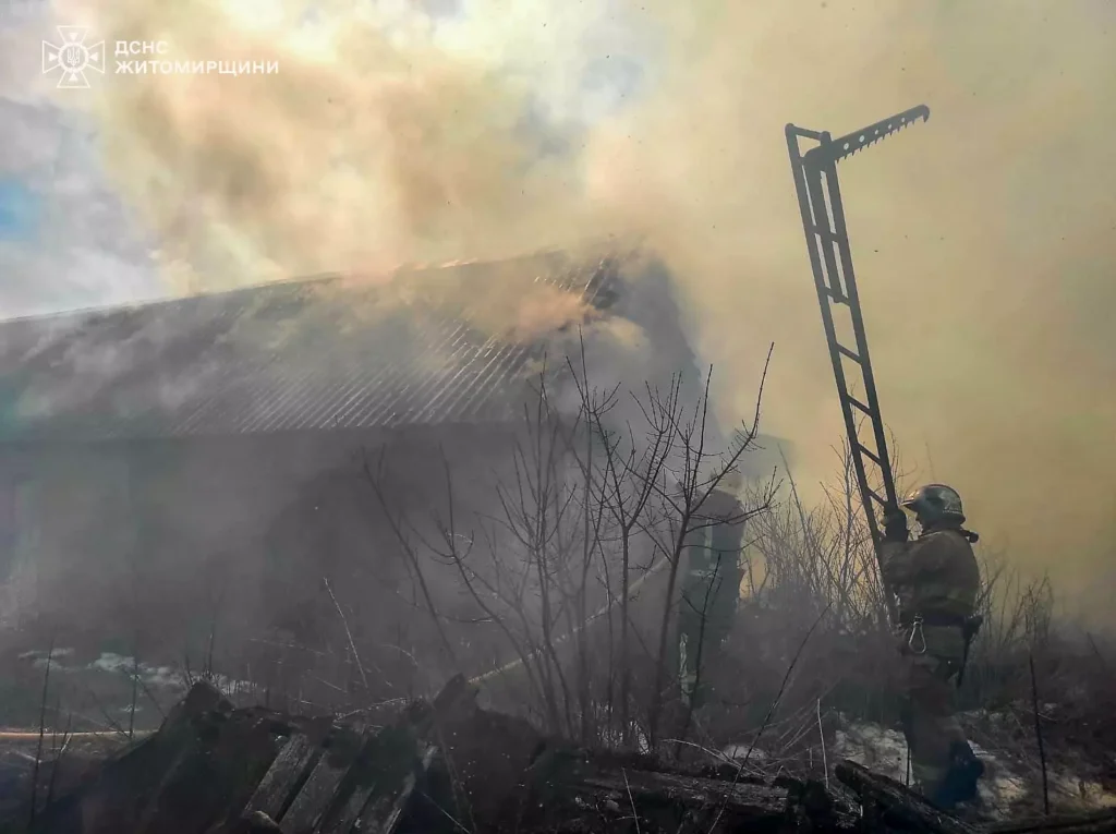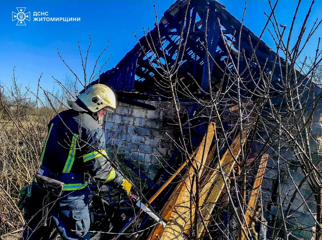 На Житомирщині зафіксували пожежу сухої трави, яка через вітер швидко поширилася та перекинулася на господарчу будівлю. Про це повідомили в ГУ ДСНС у Житомирській області.