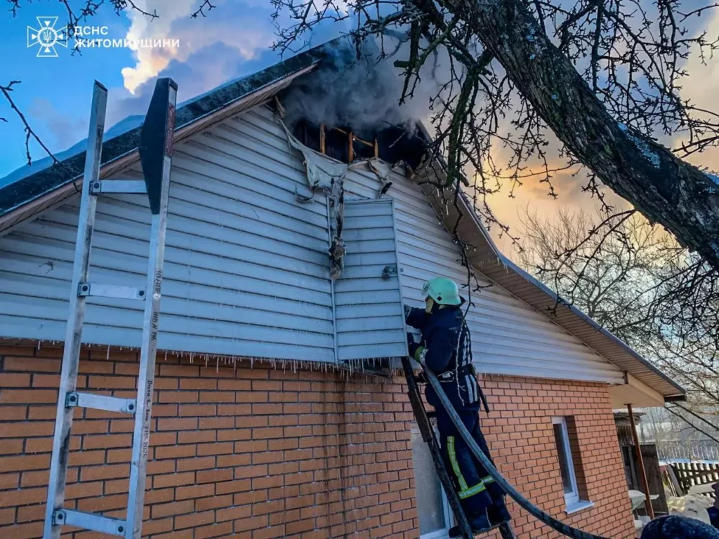 Як повідомили в ГУ ДСНС у Житомирській області, зранку 2 лютого до Служби порятунку «101» надійшло повідомлення про загоряння в житловому будинку в селі Луки. Після прибуття на місце було встановлено, що з покрівлі будинку йде дим, тож для оперативності одразу викликали додаткові сили та засоби.