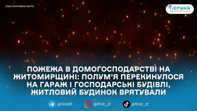 У селі Сокільча Попільнянської громади Житомирського району рятувальники ліквідували пожежу в будівлях на території приватного домогосподарства. Загоряння сталося пізно ввечері 25 січня — існувала загроза перекидання полум’я на житловий будинок.