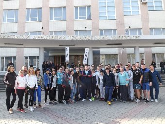 Навчальний день 6 квітня з пробіжки та зарядки розпочало більше сотні студентів Житомирського державного технологічного університету разом зі своїм ректором Віктором Євдокимовим, проректором Оксаною Олійник, викладачами і деканами факультетів – Олексієм Громовим, Оленою Денисюк, Володимиром Котенко, Оленою Лаговською .