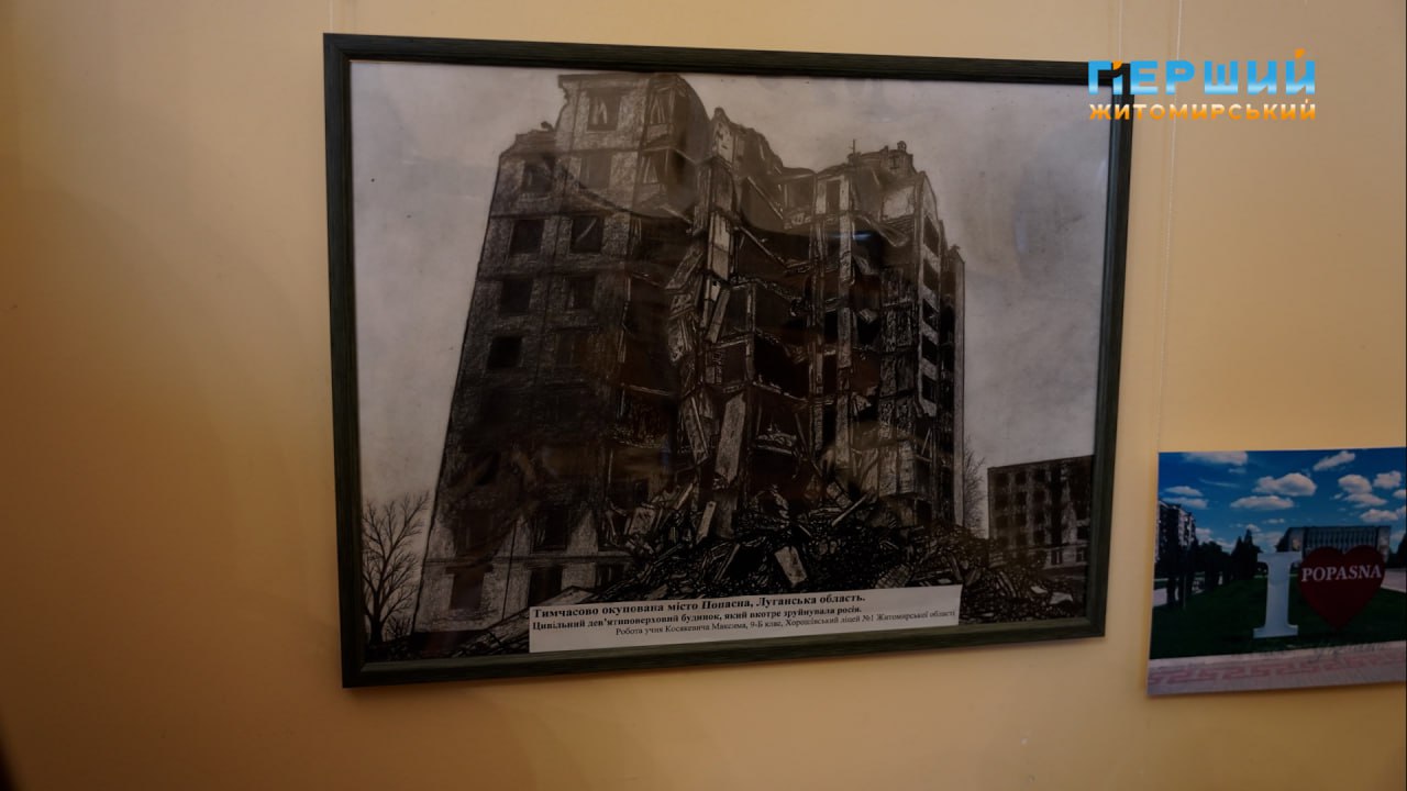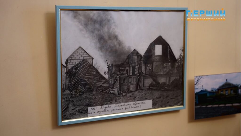 У Житомирі відкрилася виставка картин 15-річного художника із Хорошева Максима Косякевича. Тематика – війна та наслідки збройної агресії з боку російської федерації, яка призвела до руйнування життів багатьох людей.