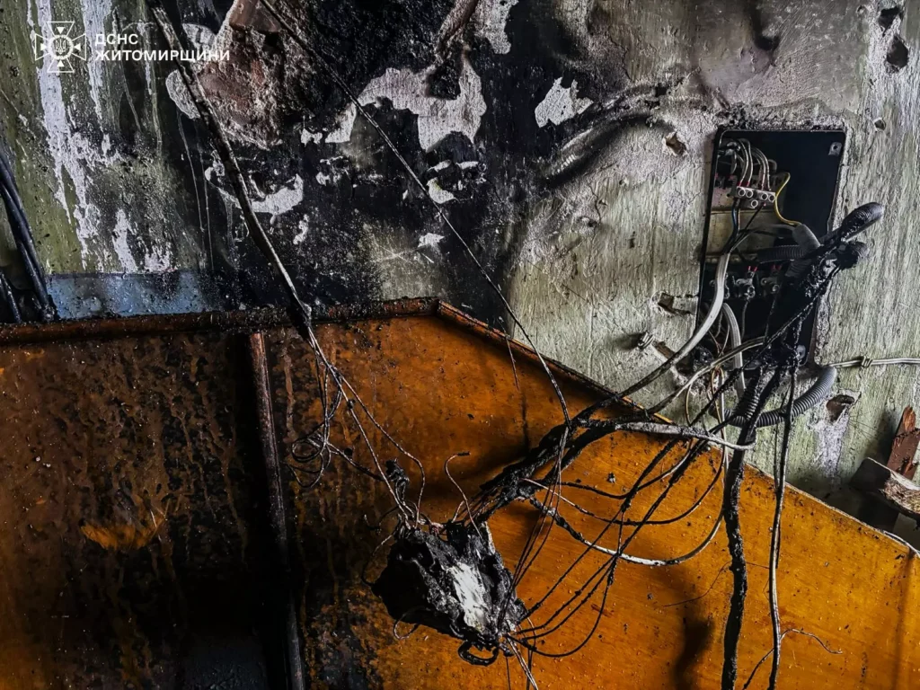Як повідомили в ГУ ДСНС у Житомирській області, на місці рятувальники встановили, що загоряння виникло в електрощитовій, розміщеній на стіні в коридорі. Існувала загроза поширення вогню будівлею.