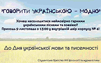 Щорічно, 9 листопада в країні відзначають День української писемності та мови. Житомирський державний університет ім. і. Франка не залишився осторонь. З нагоди свята, студентське братство ННІ філології та журналістики разом з викладачами вишу підготували акцію «Говорити українською – модно». Так, сьогодні усі бажаючі могли насолодитися неймовірно гарними піснями та поезією, виконаними студентами вишу національною мовою.