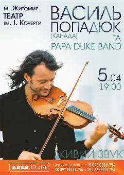 Скрипаль-віртуоз Василь Попадюк та його Papa Duke Band, щороку грають понад 150 концертів по всьому світу. Василь працює в стилістиці “world music “– це суміш автентики різноманітних етносів світу, поєднання класики і поп-музики, джазу і року. Багато хто вважає, що Василь вже давно створив власний унікальний стиль.