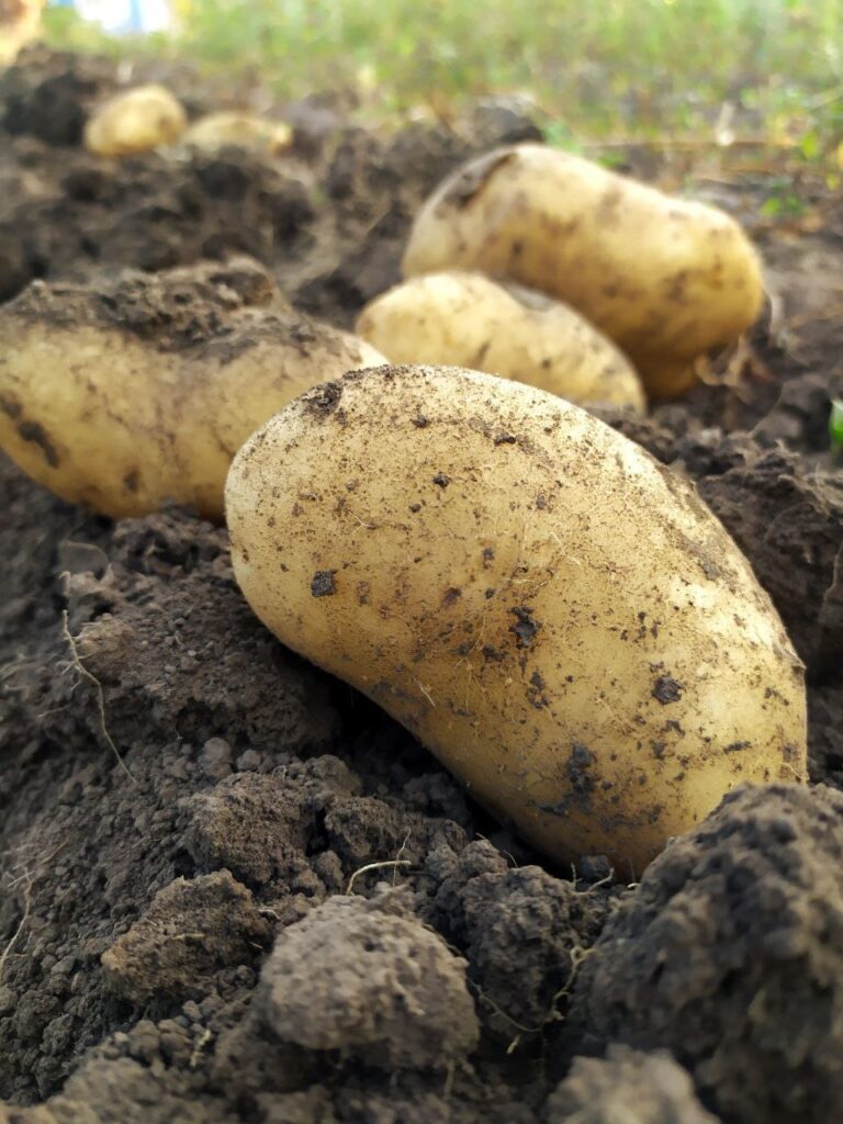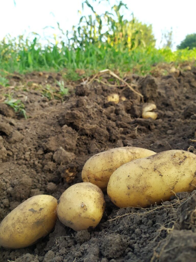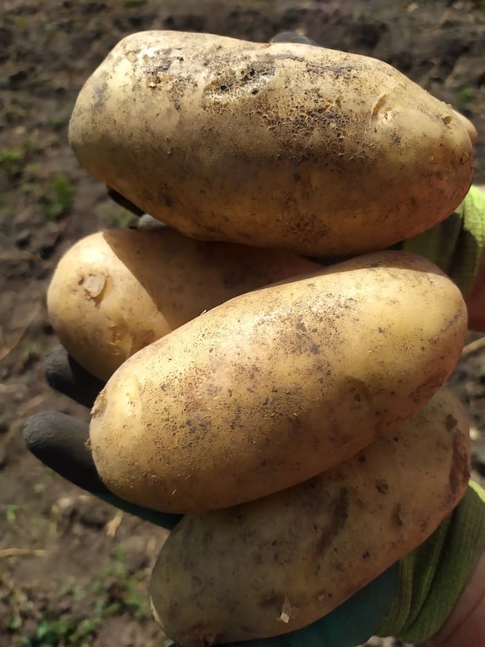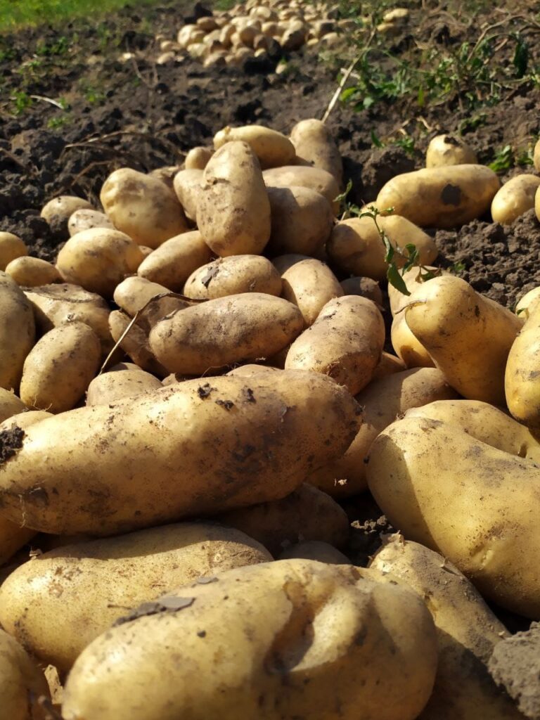 Представлена на фото картопля– вирощена протягом сезону-2023 на Любарщині в Житомирській області. Усі чотири сорти – «Агрія», «Санте», «Белла Роса», «Рокко», мають високу врожайність.