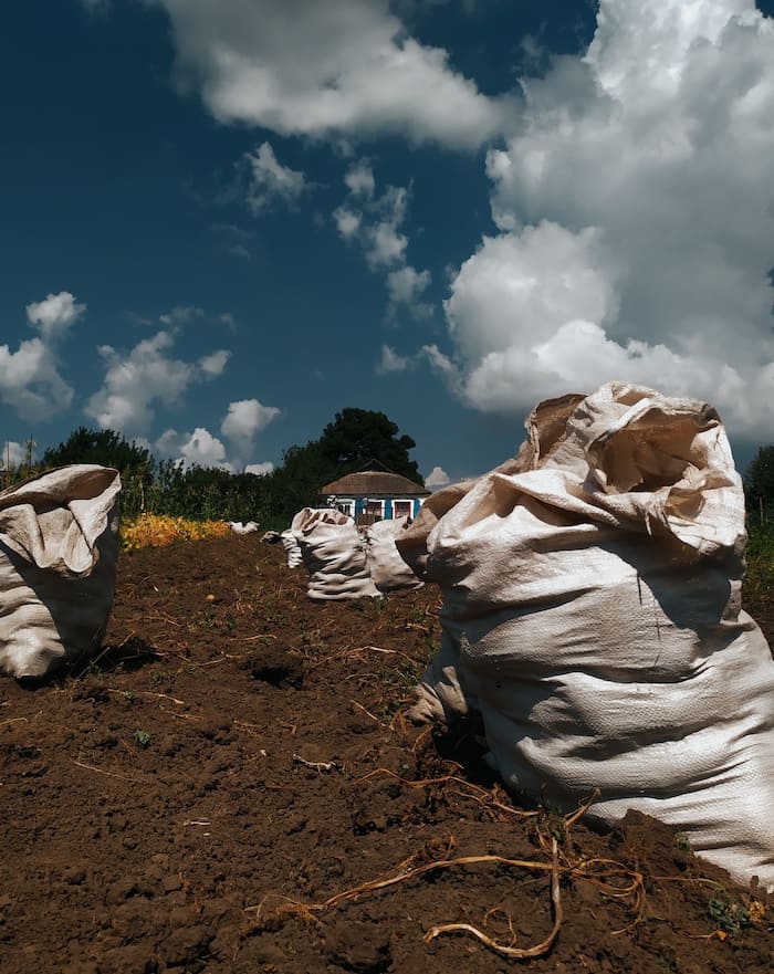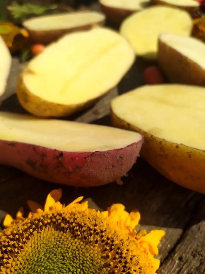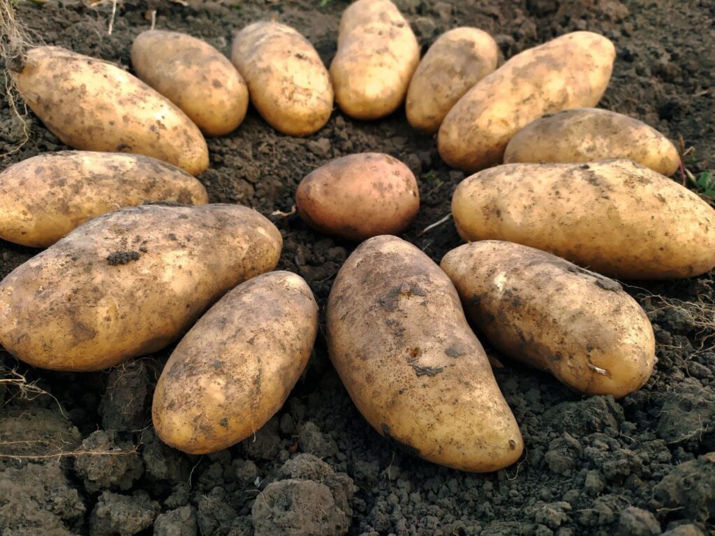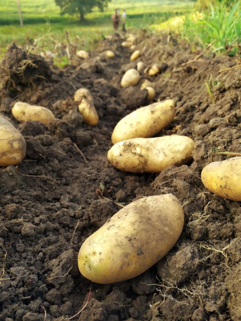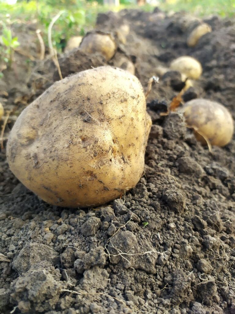 Представлена на фото картопля– вирощена протягом сезону-2023 на Любарщині в Житомирській області. Усі чотири сорти – «Агрія», «Санте», «Белла Роса», «Рокко», мають високу врожайність.