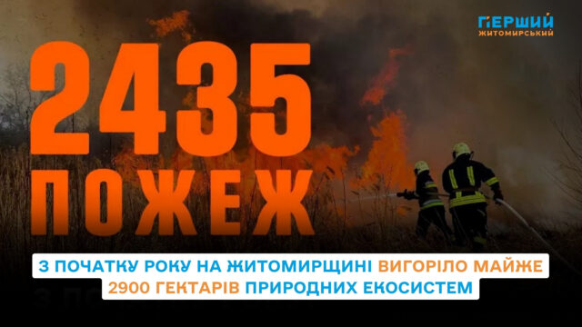 Пожежі у природних екосистемах на Житомирщині цього року вже завдали значної шкоди довкіллю. За даними ГУ ДСНС у Житомирській області, станом на 27 серпня зафіксовано 2435 загорянь, якими вогонь пройшов територію майже 2900 гектарів.
