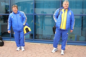 "Синьо-жовтий" вболівальник взяв кілька автографів у футболістів і тренерів, які розписались йому у книзі та на вимпелі. Хоч Сергій був такий один, зате він був з національним прапором, який розгорнув перед автобусом збірної.