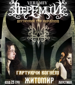 У рамках туру "Гартуючи вогнем", гурт "Веремій" виступить для житомирян 21 грудня у "Кавоманії"(вул. Московска, 24-Б, ТЦ "КВАДРАТ").