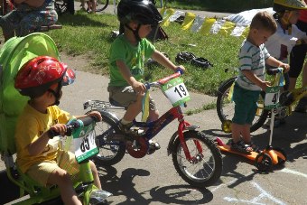 Перший заїзд для найменших (молодші учасники, категорія 2-3 роки, біговел, триколісні велосипеди): 10:30