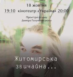Прем’єра нового короткометражного фільму, над яким працює режисер Дмитро Голумбевський та сценарист Тарас Стрільчик, відбудеться 18 жовтня о 19:10 в кінотеатрі «Україна».