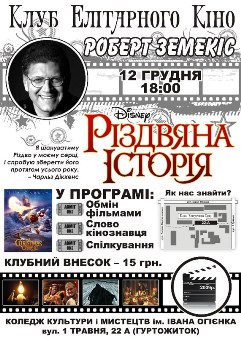 Клуб Елітарного Кіно запрошує житомирян в гуртожиток коледжу культури і мистецтв імені Івана Огієнка 12 грудня на перегляд фільму "Різдвяна історія".