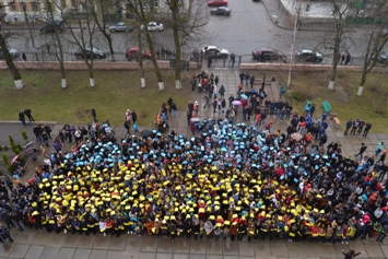 Студенти Житомирського державного університету ім.І.Франка перед четвертим корпусом влаштували флешмоб і вилаштувалися в прапор України.