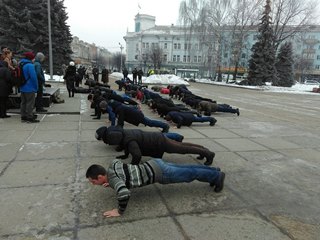 За ініціативи Житомирського обласного відділення Фонду соціального захисту інвалідів та воїнів АТО, за підтримки громадських організацій осіб з інвалідністю 1 лютого на майдані Корольова у центрі міста відбулося масове віджимання у рамках всесвітнього флешмобу на підтримку ветеранів війни.