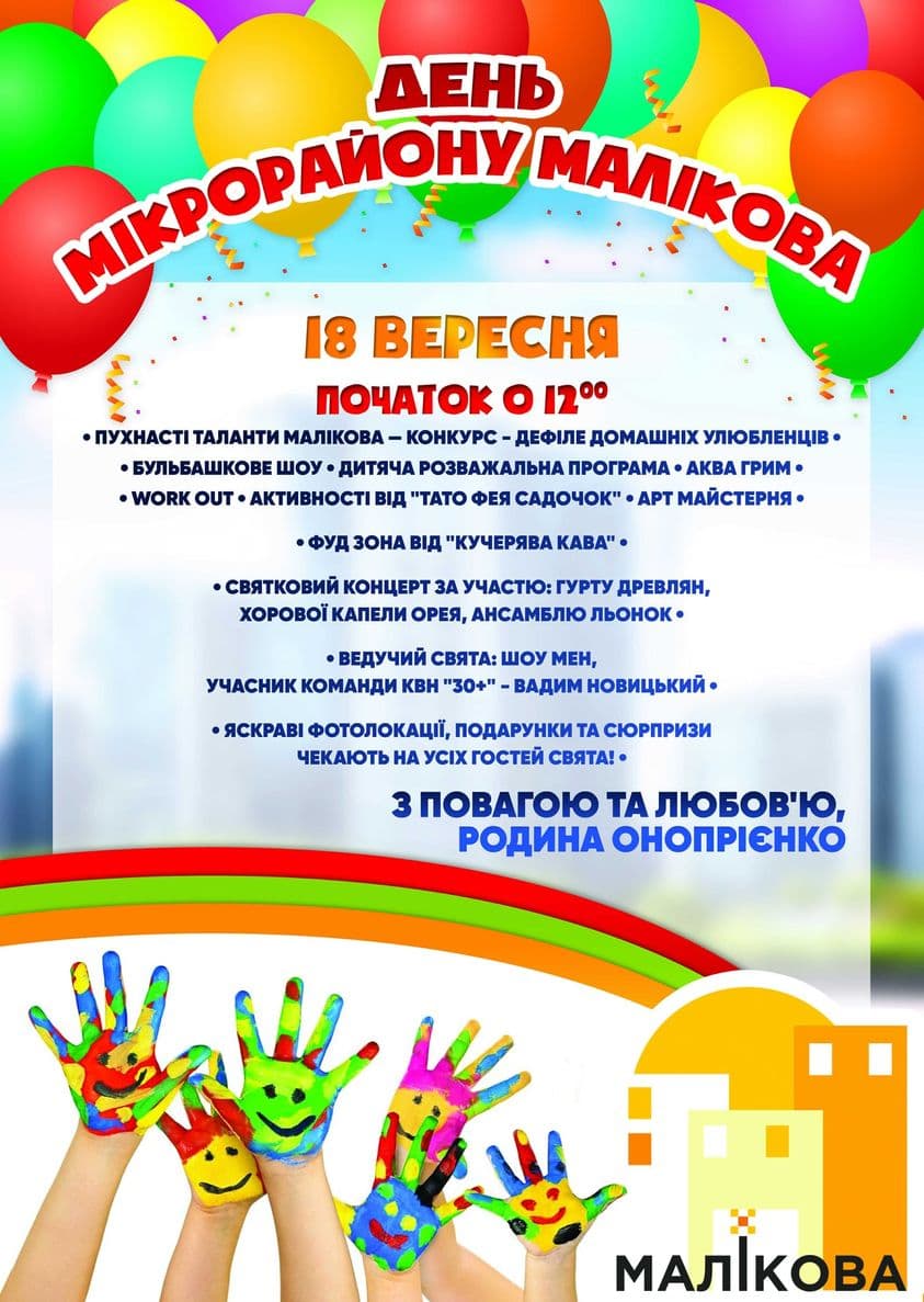 А з 12:00 за адресою Польський бульвар, 13 розпочнеться святкування Дня мікрорайону Малікова.
