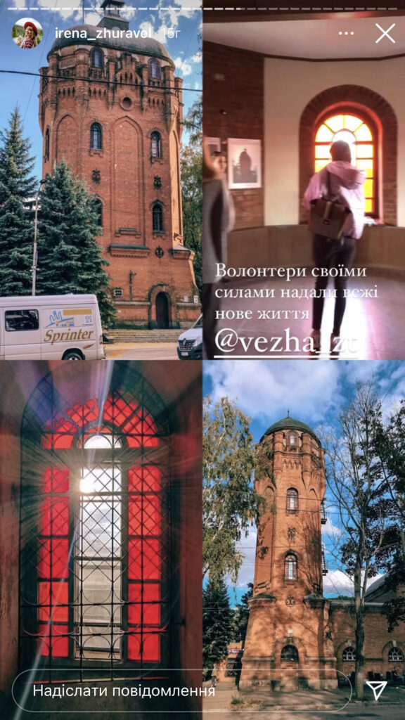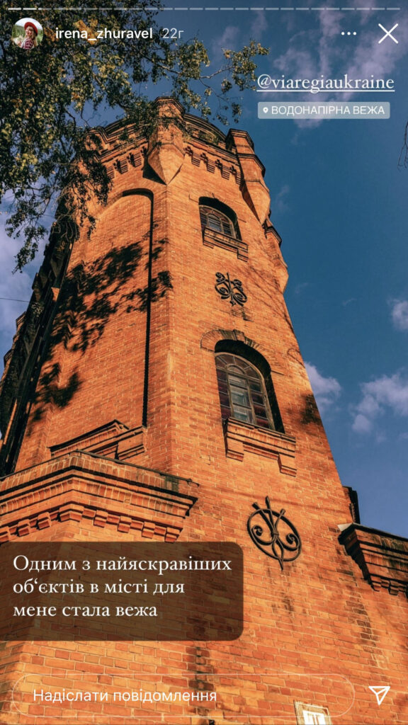 Блогери зробили свої «соковиті» світлини Водонапірної вежі та вже встигли поділитися ними у мережі Instagram. Ірена Журавель розповіла підписникам про ТОП-5 місць, які варто відвідати в Житомирі. У коментарі додає, Водонапірна вежа цілком може бути символом міста:
