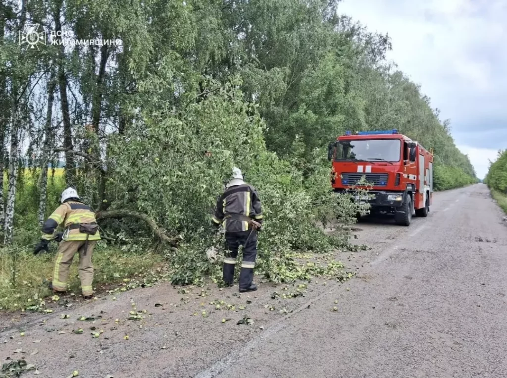 У селі Плоска Бердичівського району дерево впало на проїжджу частину. Подібні випадки зафіксовані в селах Дертка та Великі Деревичі Житомирського району. У кожному з випадків дерево перекривало дорогу та створювало небезпеку для транспорту.