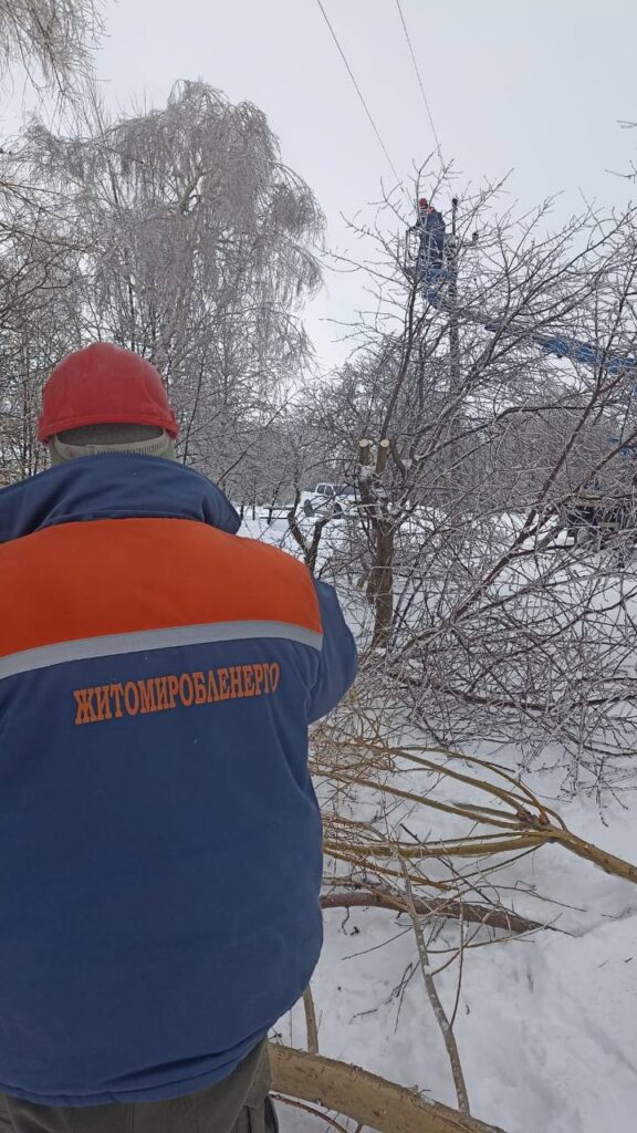 У ніч з 8 на 9 січня складні погодні умови — снігопади, обледеніння та сильні пориви вітру — спричинили пошкодження електричних мереж на Житомирщині. Про це повідомили в «Житомиробленерго».