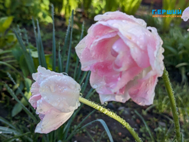 З самого ранку у Житомирі туман покрив собою простори міста та залишив на листях і квітах свої відбитки. Ці краплини води немов додають і без того заворожуючій природі наших околиць особливої атмосфери пробудження та відродження.