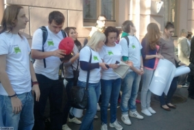 "Як тільки ми дізналися про акуцію "STOP" закону про наклеп!", ми одразу вирішили їхати до Києва, адже цей не демократичний закон завадить нам нормально працювати. У четвер у Чернівцях вже відбулася акція протесту, на якій були присутні близько 200 людей", – розповів керівник Чернівецької ТРК "ТВА" Василь Заблоцбкий. Чернівецька група прибула першою на акцію.