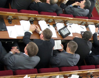 Також на сесії зачитали заяву депутата Харитончука про вихід із Партії регіонів.