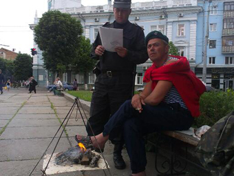 Міліція каже, що не буде його виганяти з місця, а просто вимагає загасити багаття.