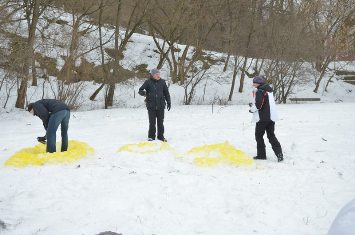 Червоно-чорний напис зі снігу під мостом у парку Гагаріна житомиряни могли бачити у суботу та неділю.