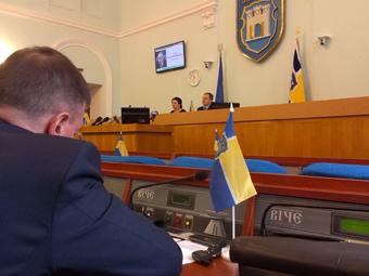 Під час перерви пройшло засідання регламентної комісії, на якому було прийнято рішення про те, що голосування за питання щодо розпуску виконавчого комітету не відбулось.