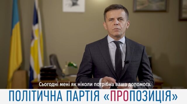 "Цього літа я разом з мерами українських міст заснував нову політичну партію — «Пропозиція». Партію людей, позиція яких професійність у роботі місцевого самоврядування, захист інтересів мешканців українських громад, розвиток і прогрес міст і сіл. Партію лідерів місцевого самоврядування. Тому дуже важливо, щоб ви проголосували не лише за мене, але й за мою команду — партію «Пропозиція», яка висунула своїх кандидатів у депутати до міської ради Житомира, а також в обласну і районні ради.