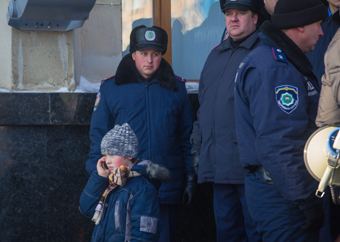Сьогодні зранку у внутрішній двір Житомирської ОДА заїхав автобус з міліціонерами у повній амуніції: щитами, шоломами та кийками.