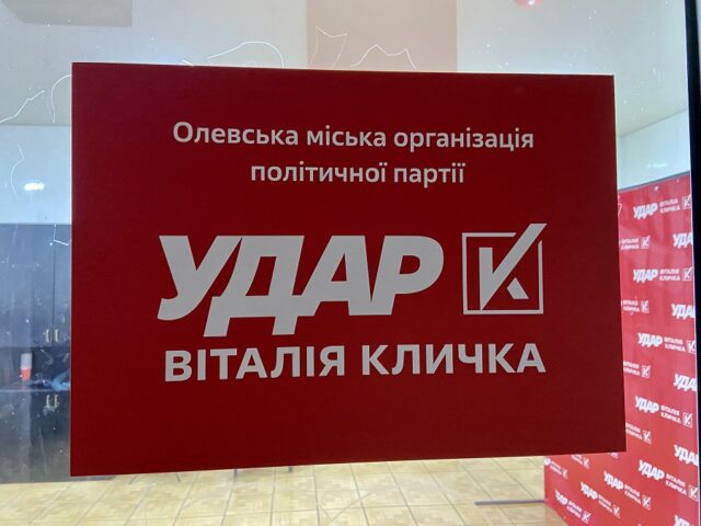 В Олевську відкрили офіс політичної партії «УДАР Віталія Кличка». Ігор Гундич, заступник голови Житомирської обласної організації партії «УДАР Віталія Кличка» наголосив на важливості події для розвитку осередку.