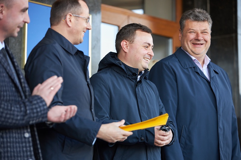 На майдані Корольова, перед будівлею Житомирської облдержадміністрації, відбулася урочиста передача громадам нових шкільних автобусів. Ключі та документи від транспортних засобів представникам громад вручав народний депутат України, голова Житомирської обласної партійної організації «Слуга Народу» Арсеній Пушкаренко разом із головою облдержадміністрації Віталієм Бунечком та головою облради від партії «Слуга Народу» Володимиром Федоренком.
