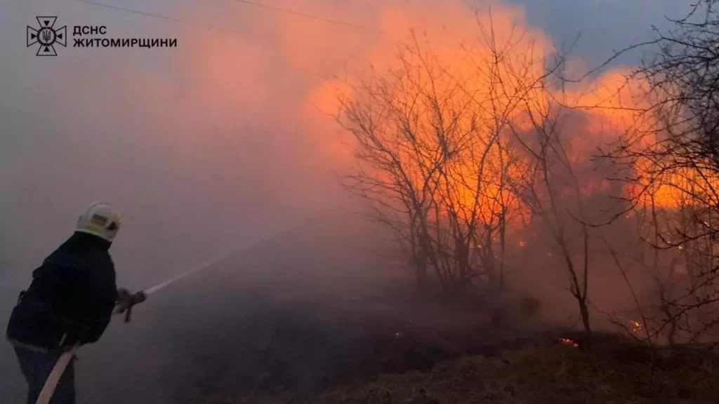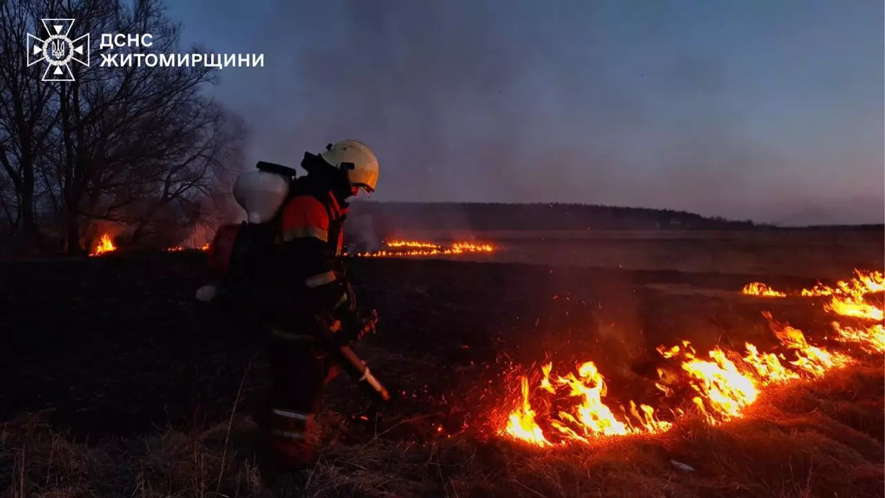Протягом останньої доби на Житомирщині зафіксовано 24 випадки загоряння сухої трави та одну пожежу торфу. Загальна площа, охоплена вогнем, становить близько 26 гектарів. Найбільше пожеж сталося в Житомирському та Бердичівському районах, повідомляє ГУ ДСНС у Житомирській області.