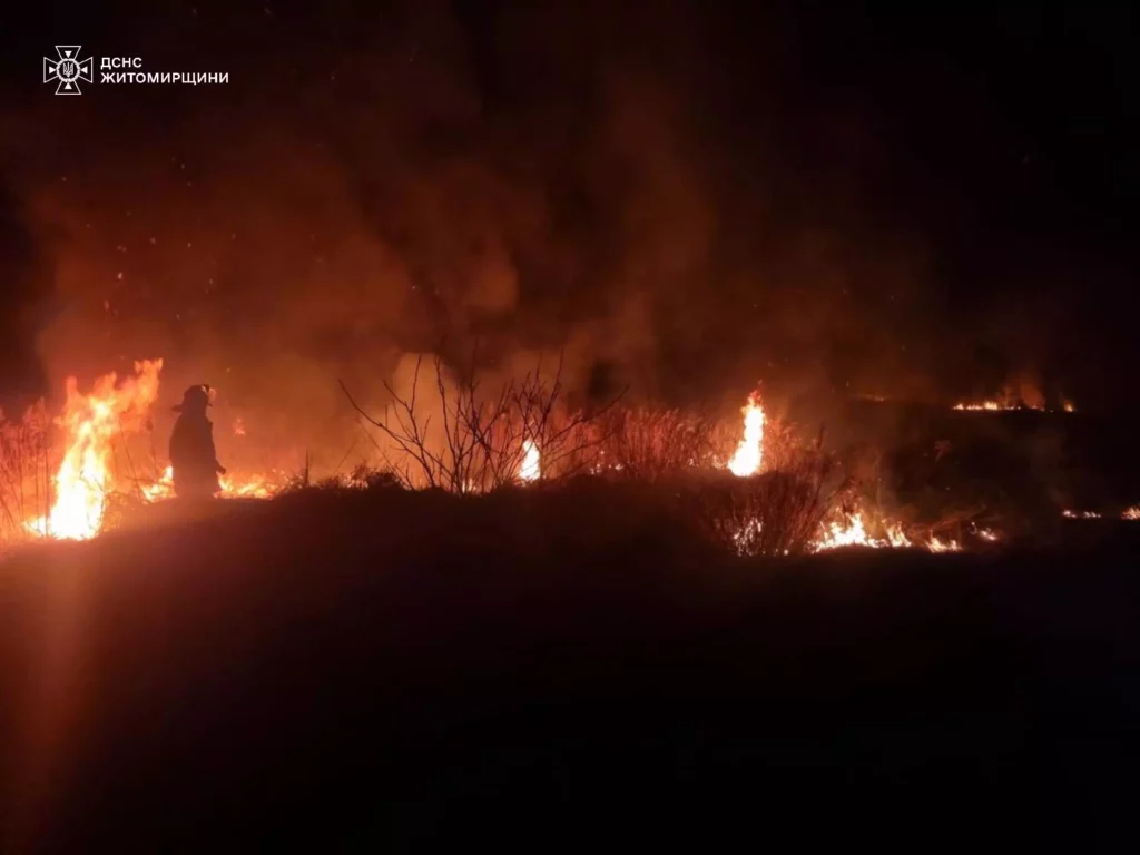 Одна з найбільших пожеж сталася поблизу селища Ружин Бердичівського району. Повідомлення про займання надійшло до Служби порятунку «101» о 15:33. Вогонь охопив 2,5 га сухої трави та міг поширитися на житлові будинки селян.