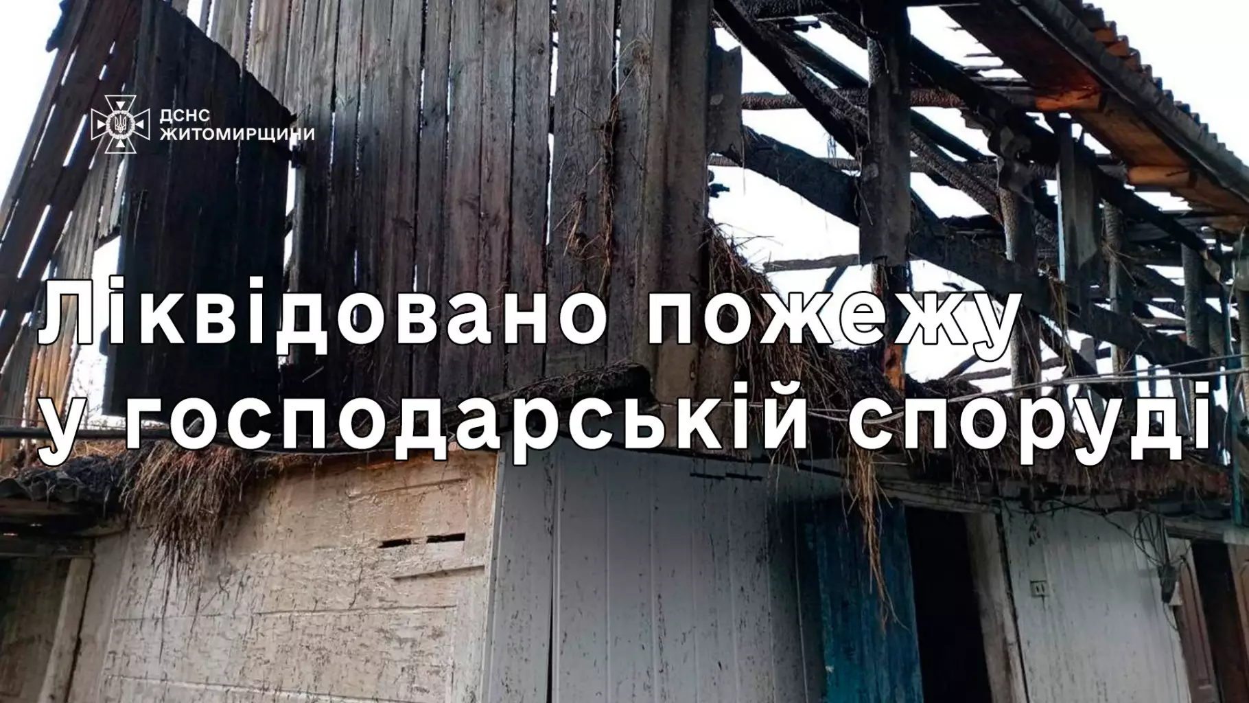13 жовтня о 16:12 до Служби порятунку “101” надійшло повідомлення про пожежу в дерев’яній господарській будівлі. По прибуттю, рятувальники встановили, що вогнем охоплено покрівлю хліву, а також існувала загроза перекидання полум’я на гараж та сінник, розташовані поруч.