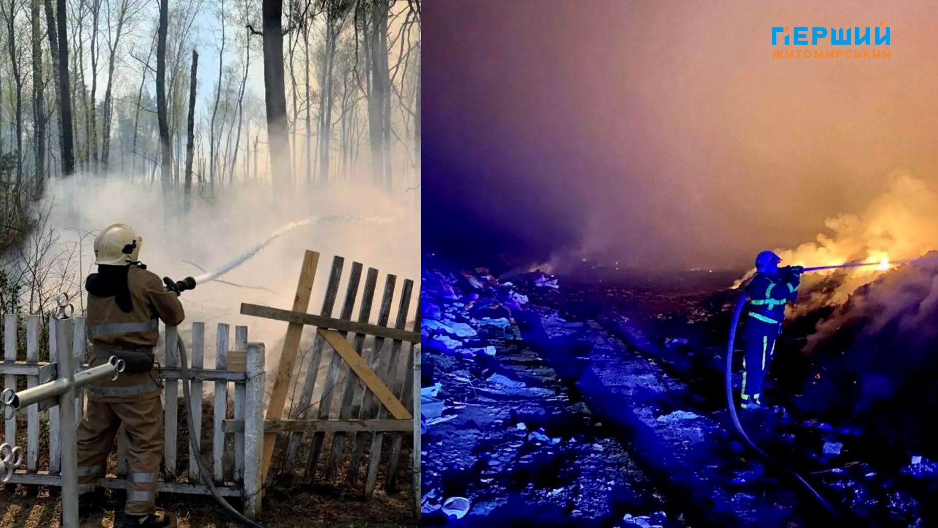 Окремо повідомляється, що триває ліквідація пожежі на стихійному сміттєзвалищі у селищі Довбиш Звягельського району. Там горіння почалося від сухостою, і на місці працюють 13 рятувальників і 4 одиниці техніки.