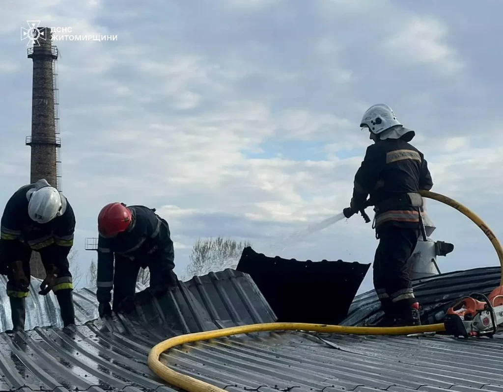 У місті Малин Коростенського району сталася пожежа на території місцевого деревообробного підприємства. Увечері 21 квітня там загорівся дах столярного цеху.
