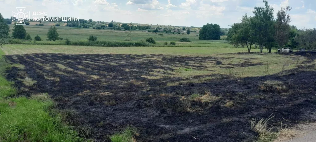 Ще один інцидент зафіксували в Коростенському районі — тут загорілося пшеничне поле на корені. Вогонь вдалося загасити зусиллями місцевих мешканців, підрозділи ДСНС до гасіння не залучались.