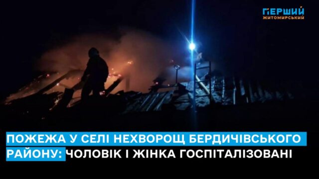 6 квітня о 21:33 до Служби порятунку “101” надійшло повідомлення про пожежу в приватному житловому будинку в селі Нехворощ Бердичівського району. До прибуття рятувальників сусіди допомогли вивести з будинку чоловіка та жінку, яких медики госпіталізували через отруєння продуктами горіння.