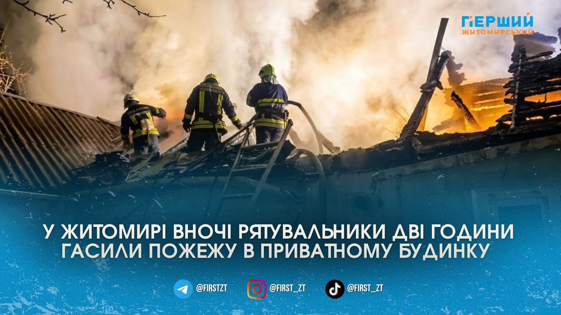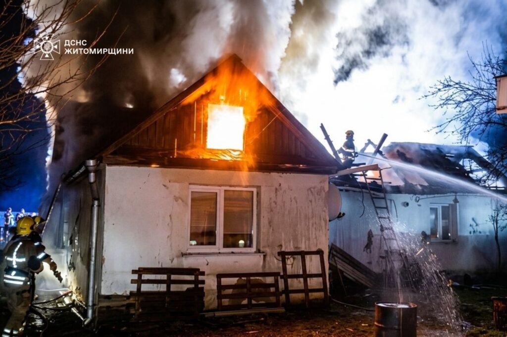 У Житомирі вночі рятувальники гасили пожежу в приватному житловому будинку. Вогонь охопив покрівлю оселі, а площа займання сягнула близько 200 квадратних метрів.
