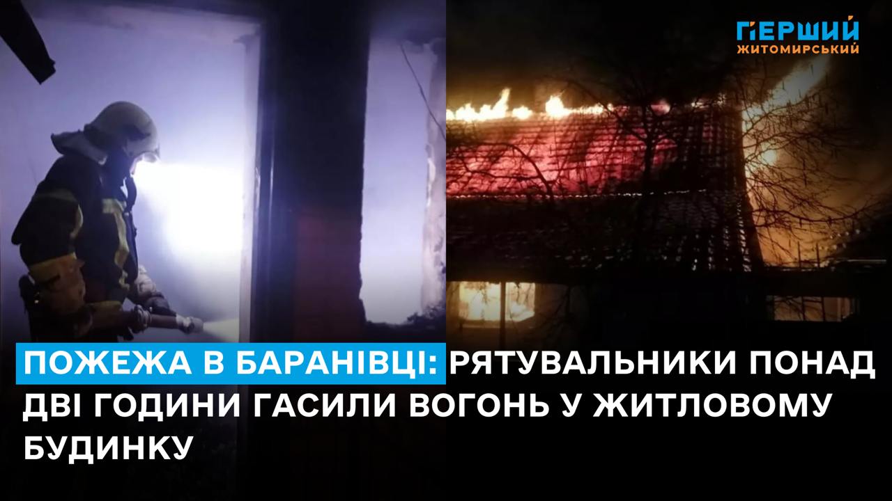У місті Баранівка Житомирської області рано-вранці 30 березня сталася пожежа в приватному будинку. Вогонь спалахнув на кухні та швидко поширився на покрівлю, створюючи загрозу сусіднім будівлям – літній кухні та сараю.